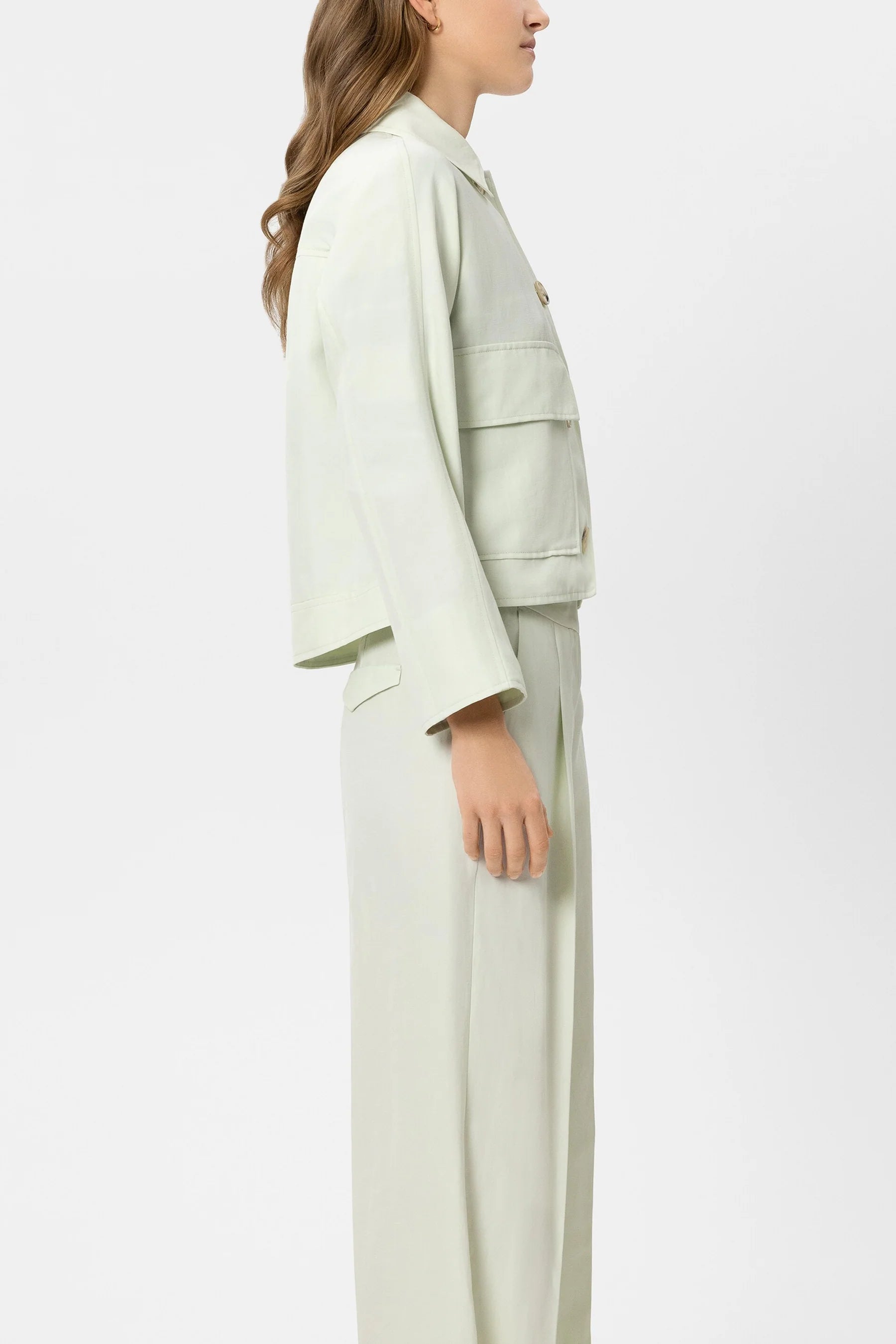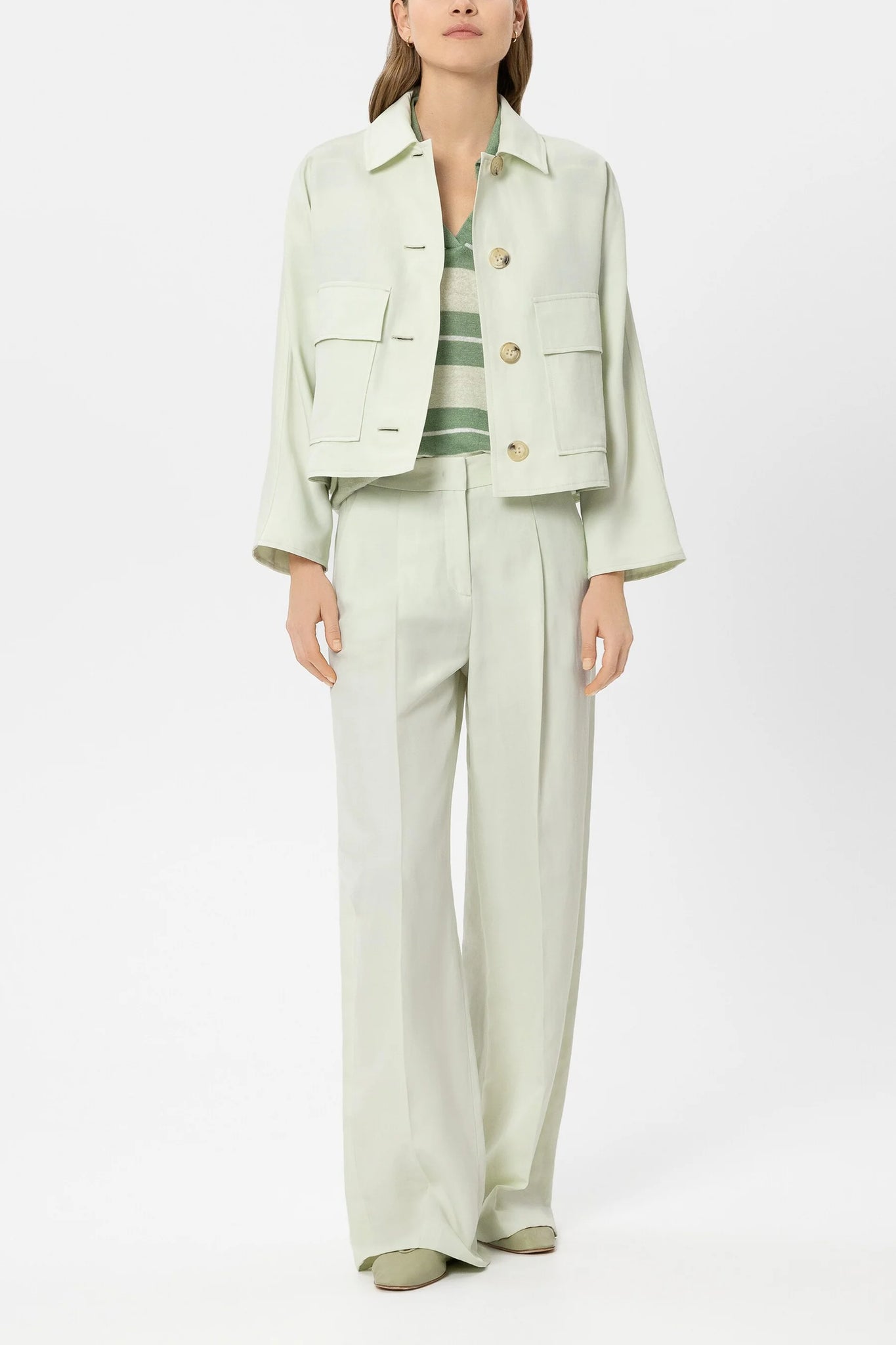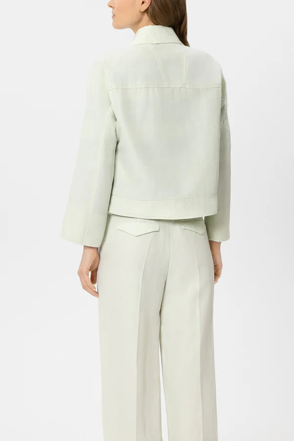 Sporty, slightly flared shirt jacket made of technical linen fabric. The jacket has casual 3/4 length batwing sleeves and large slit pockets with flaps. Wear it with the co-ordinating Lauren Pants.