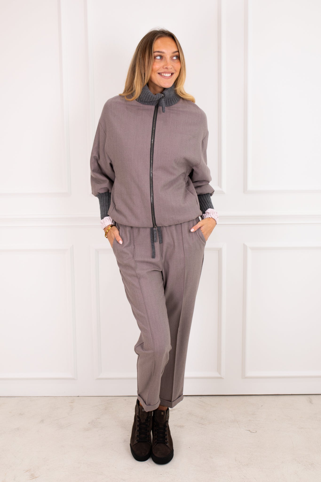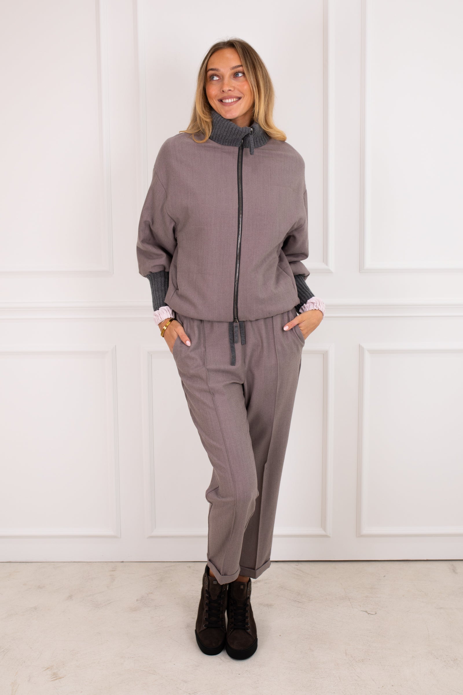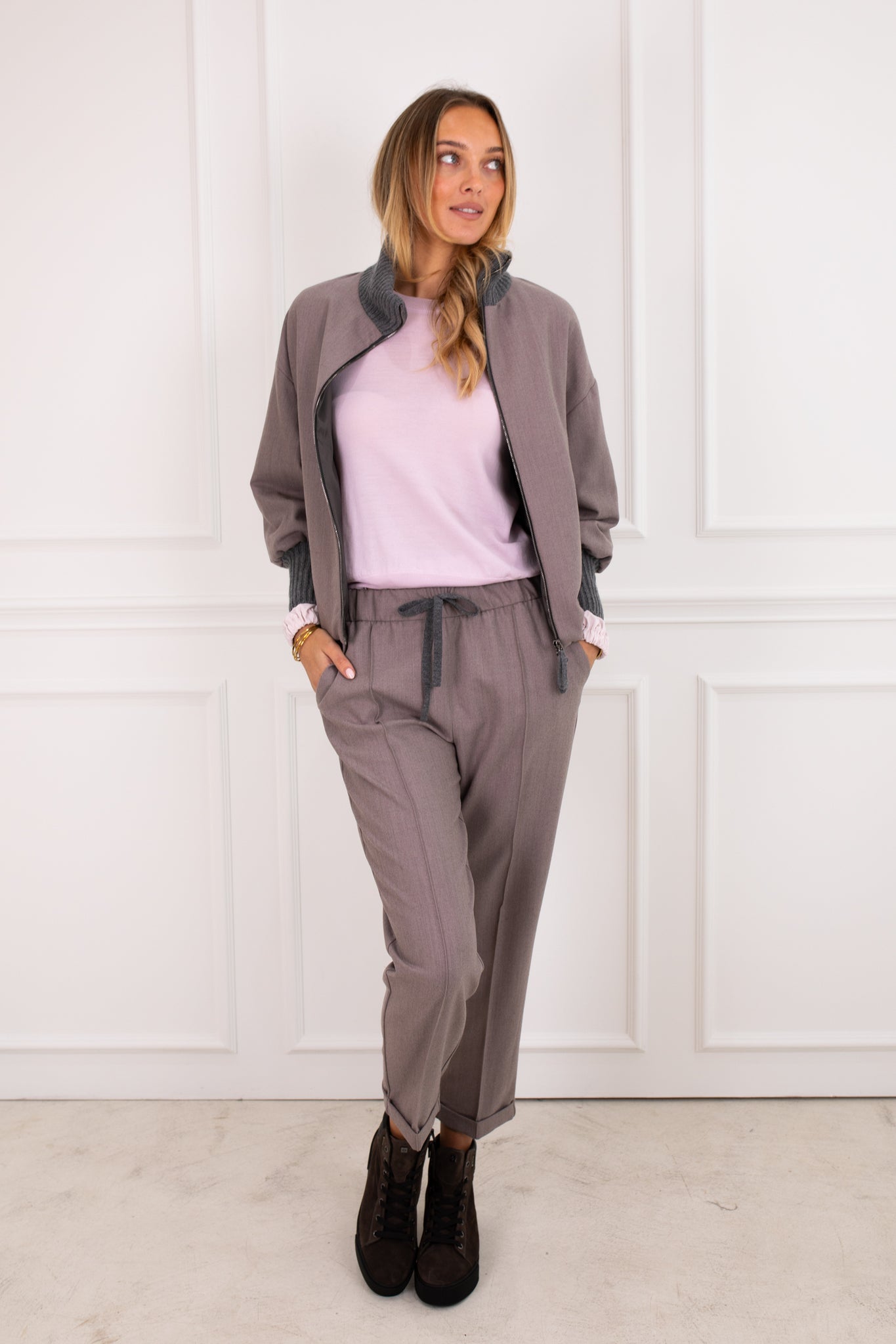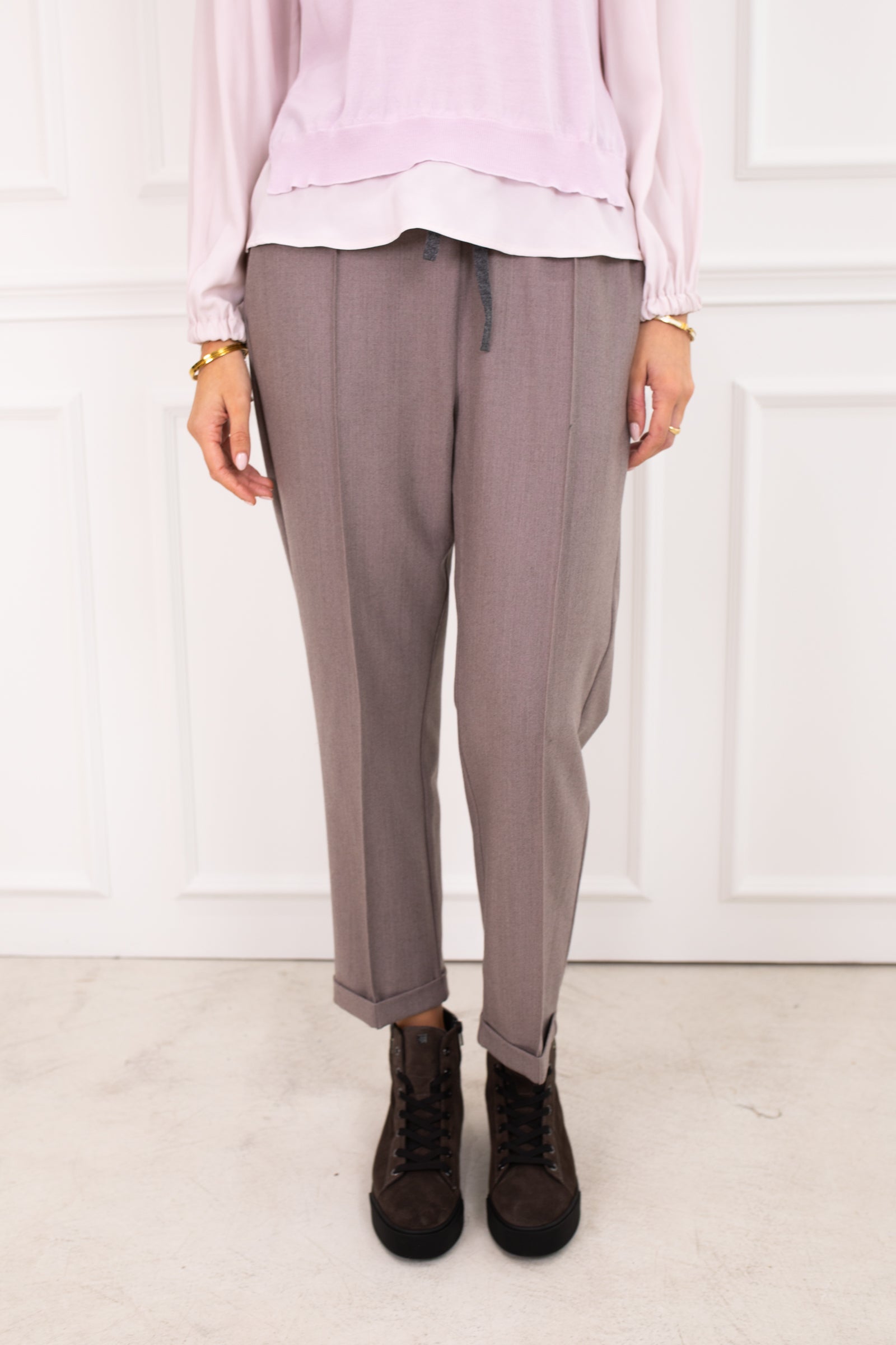 Relaxed yet smart wool trousers with a drawstring waist and turn up hems. This style is cropped, has two side pockets and a sewn in font crease. Style with the co-ordinating Lake Jacket for the full look.
